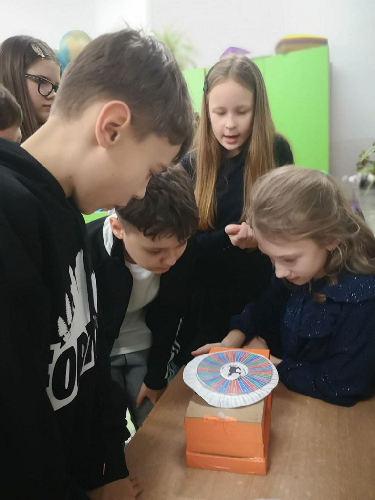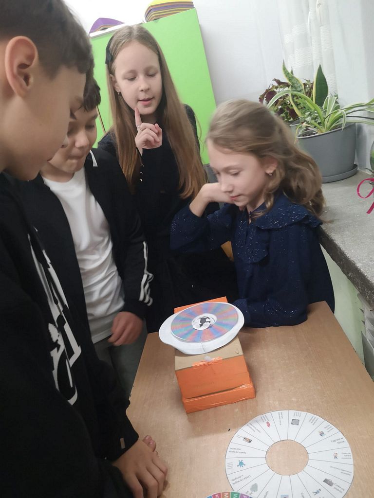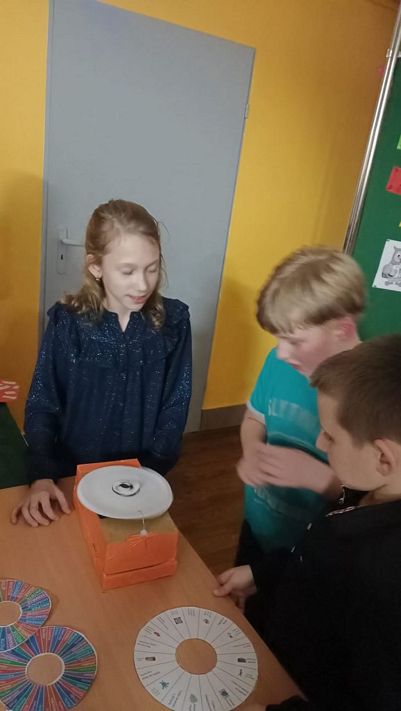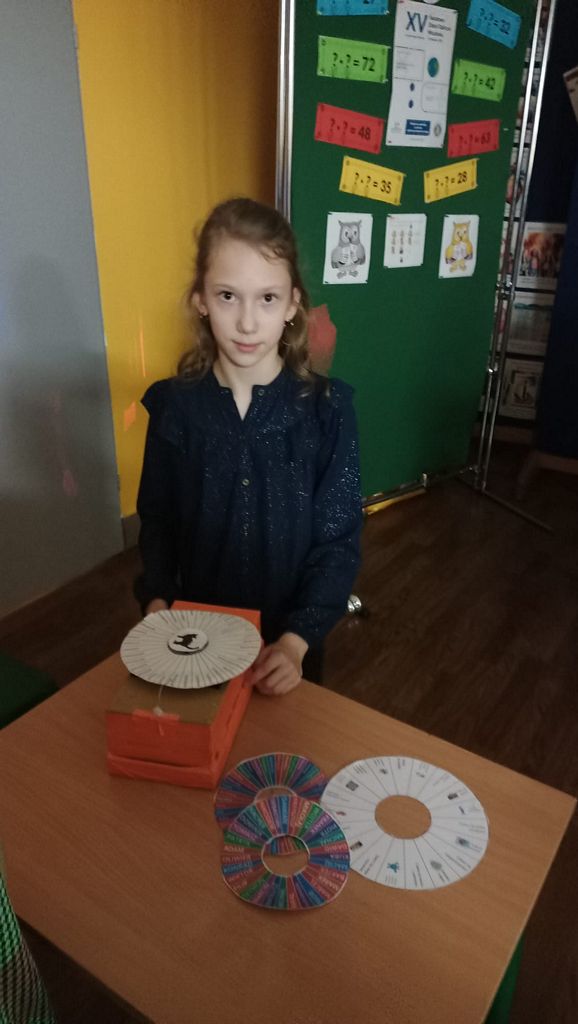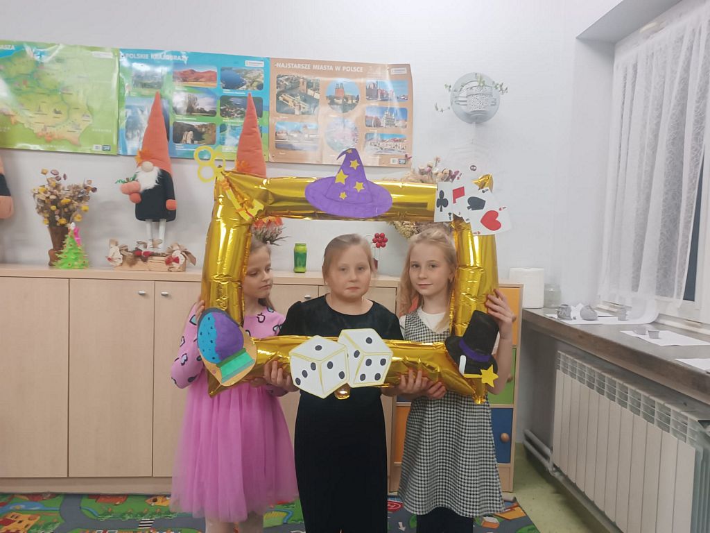 Prawdziwym hitem tegorocznych wróżb było przygotowane przez Karolinkę z klasy piątej „Koło Fortuny” – niezwykle pomysłowe i całkowicie samodzielnie wykonane narzędzie wróżbiarskie. Gratulujemy kreatywności oraz zaangażowania!