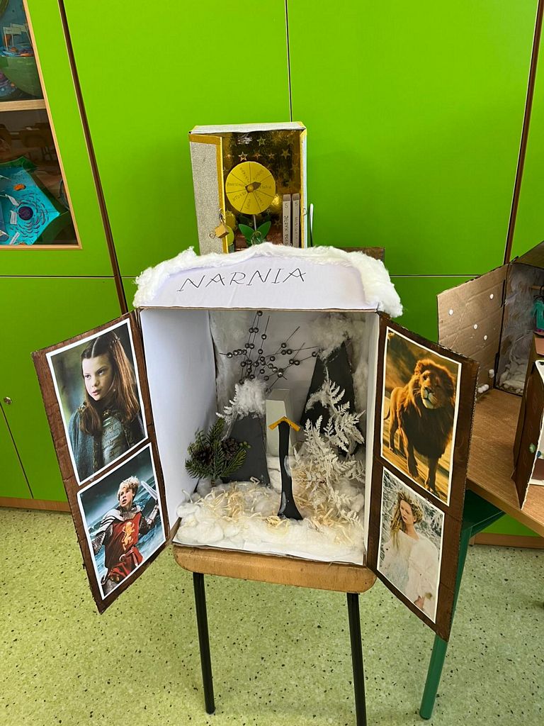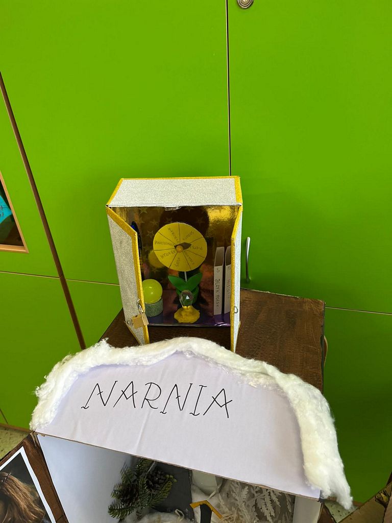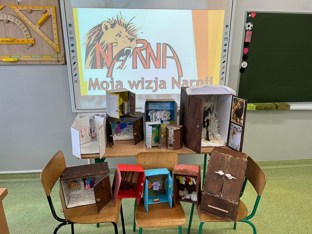 Celem było twórcze przedstawienie motywu magicznej szafy jako przejścia do świata Narnii. Dzieci wykonały przestrzenne prace z kartonowych pudełek, umieszczając w ich wnętrzu informacje o świecie przedstawionym i ciekawostki z lektury.