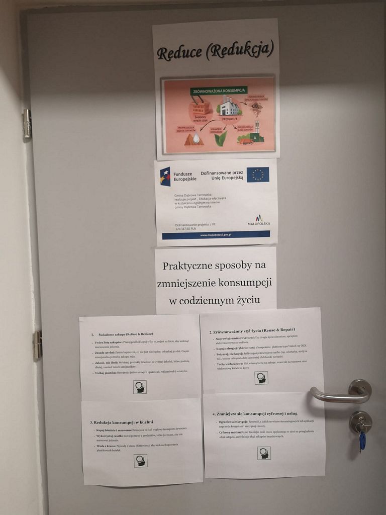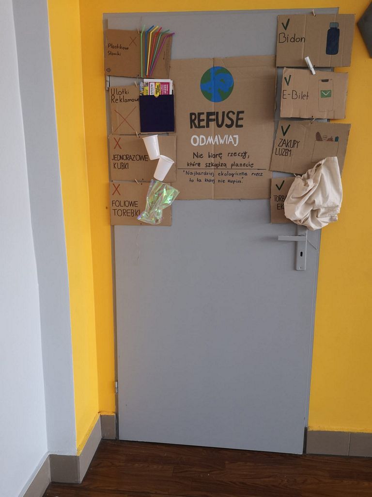Od losowania do działania. Wszystko zaczęło się podczas uroczystego apelu inaugurującego program. To właśnie wtedy przewodniczący każdej z klas wylosowali jedno hasło (jedno „R”). Zadaniem uczniów było przygotowanie mini-kampanii edukacyjnej dotyczącej wylosowanego filaru. Uczniowie mieli za zadanie ozdobić drzwi swoich sal lekcyjnych inspirującymi hasłami, grafikami oraz przykładami dobrych, ekologicznych praktyk.