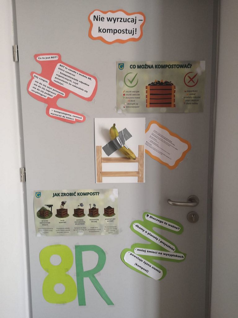 W ramach realizacji projektu „EkoCzynni – 8R dla Planety”, wspieranego przez program grantowy Fundacji ORLEN im. Ignacego Łukasiewicza, nasza szkoła tętni ekologicznym życiem! Za nami kolejna udana inicjatywa – pełna kreatywności akcja „8R – 8 drzwi”.