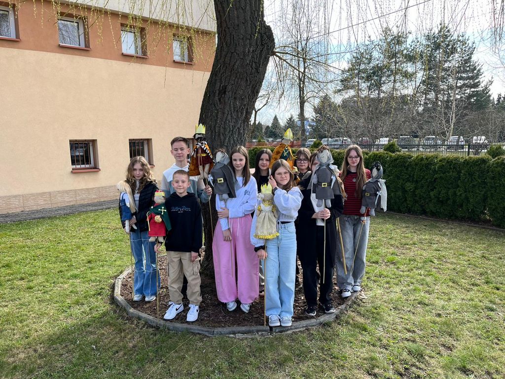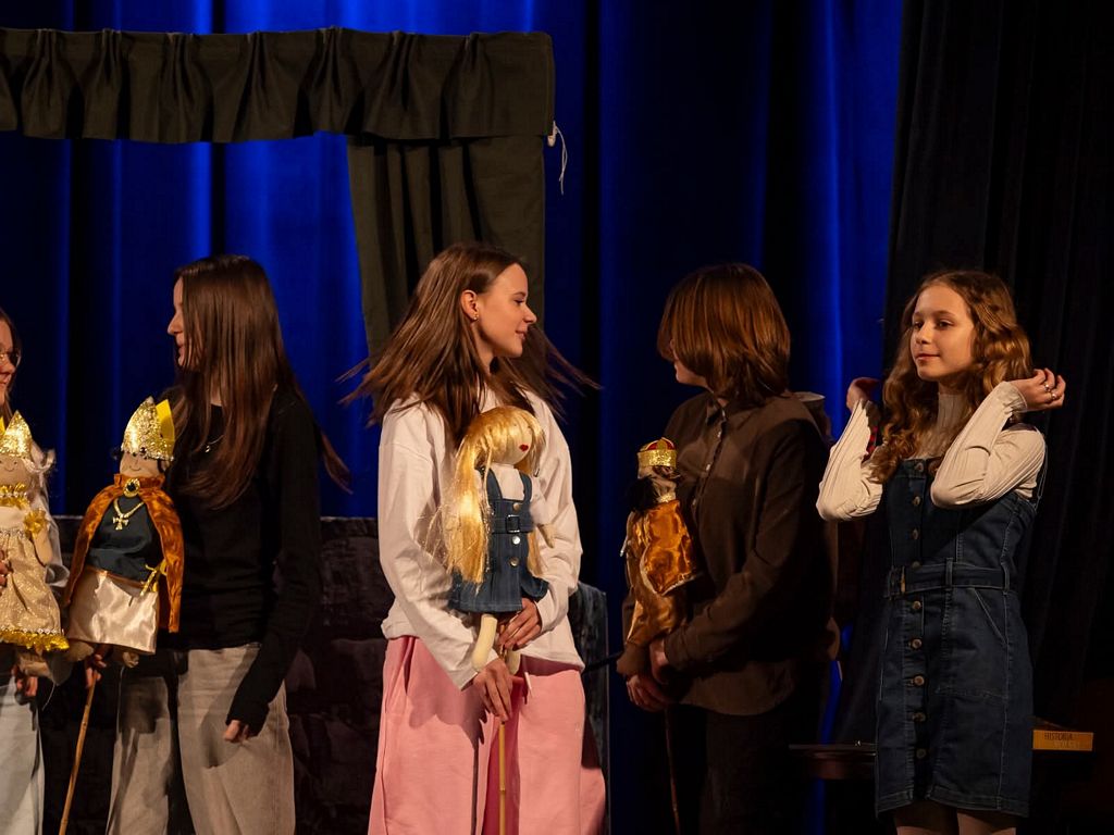 W role animatorów lalek i narratorów tej opowieści wcielili się uczniowie: Kacper Kotlarz, Martyna Tabor, Emilia Noga, Izabela Łucek, Karolina Krawczyk, Lena Kowal oraz Maria Chmura z klasy VII, Wojciech Noga z klasy VI oraz Zuzanna Cholewa z klasy V. Młodzi artyści z dużą precyzją i wyczuciem ożywiali kukiełki, nadając im charakter, emocje i sceniczne życie, co pozwoliło stworzyć spójną i poruszającą wizję teatralną.
